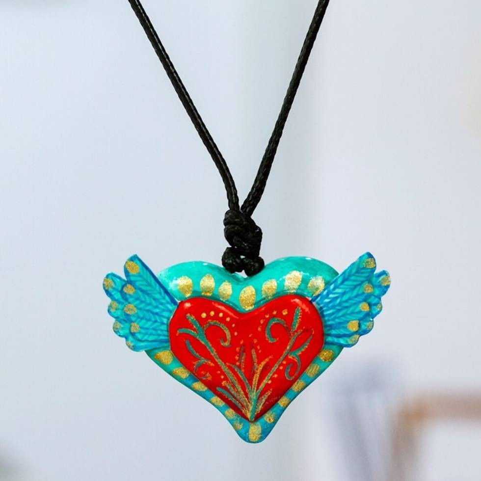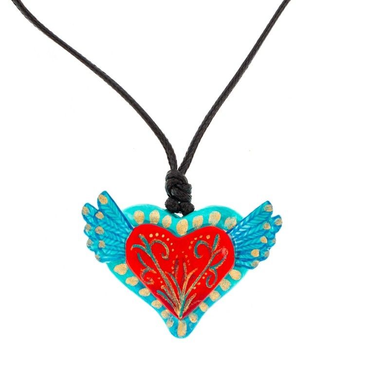 Folk Art Heart Pendant Necklace 'From the Heart' Item ID: 2669931690
