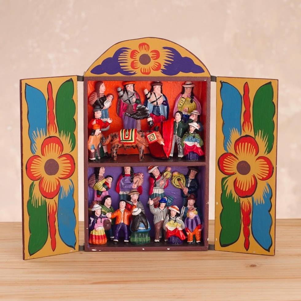 I bought this retablo a few years ago, and it's just now that I'm writing to express how beautiful it is. It inspires peace and celebration for the birth of the Savior. The simple brushes depicting the Peruvian mountains, the dark blue night and the bright star are added bonuses. The beautiful little characters fill me with joy. I never get tire of looking at them. For certain this is one of my favorite pieces (and I have bought many!).