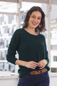Forest Spruce Teal Baby Alpaca Pullover Sweater 'Teal Charm' Item ID: 2671820055