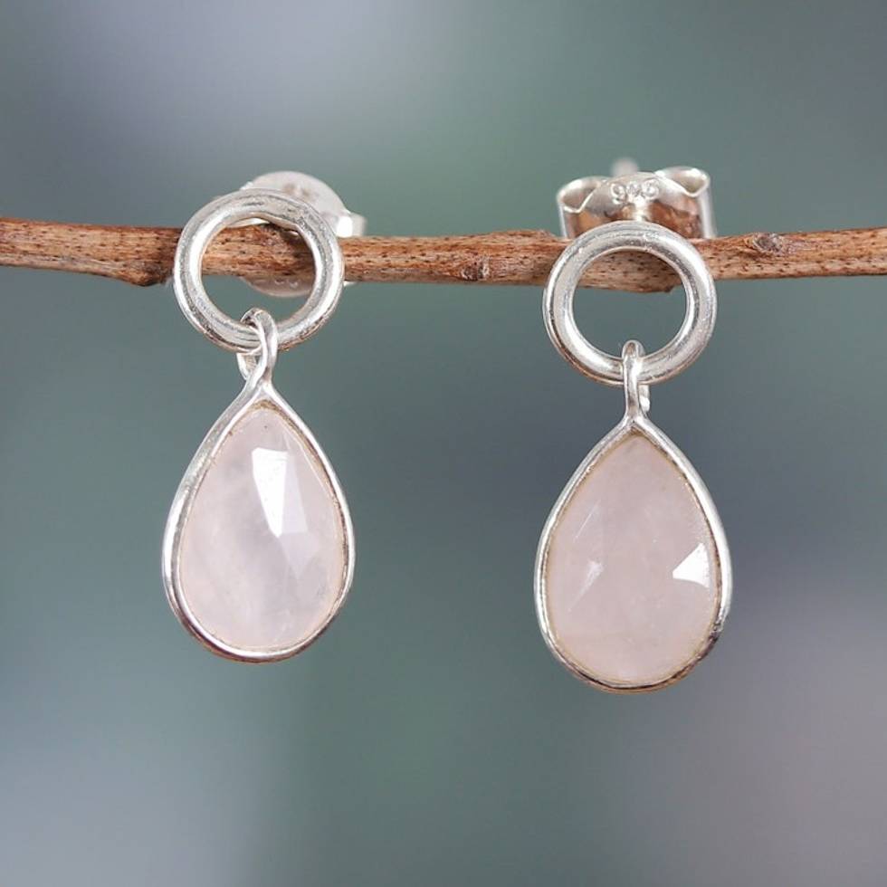 Four-Carat Rose Quartz and Sterling Silver Dangle Earrings 'Gentle Rain' Item ID: 2671622370