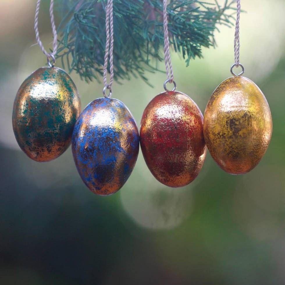 Four Gold Tone Albesia Wood Egg Shaped Ornaments from Bali 'Golden Eggs' Item ID: 2670222456