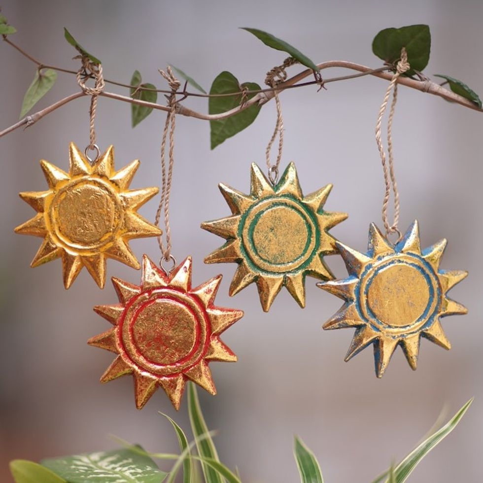 Four Gold Tone Albesia Wood Sun Ornaments from Bali 'Sunny Holiday' Item ID: 2669892075
