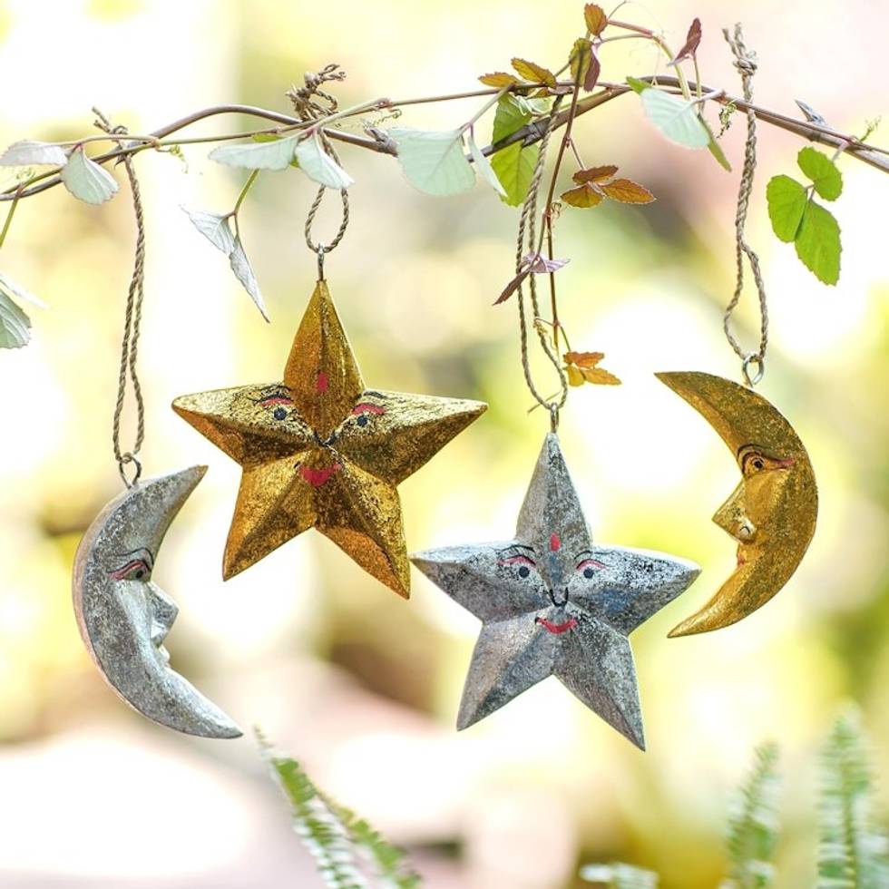 Four Moon and Star Albesia Wood Ornaments from Bali 'Stellar Holiday' Item ID: 2671732665