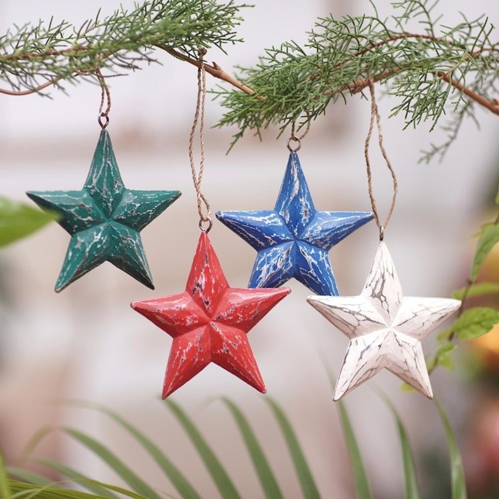 Four Multicolored Albesia Wood Star Ornaments from Bali 'Multicolored Stars' Item ID: 2671732719