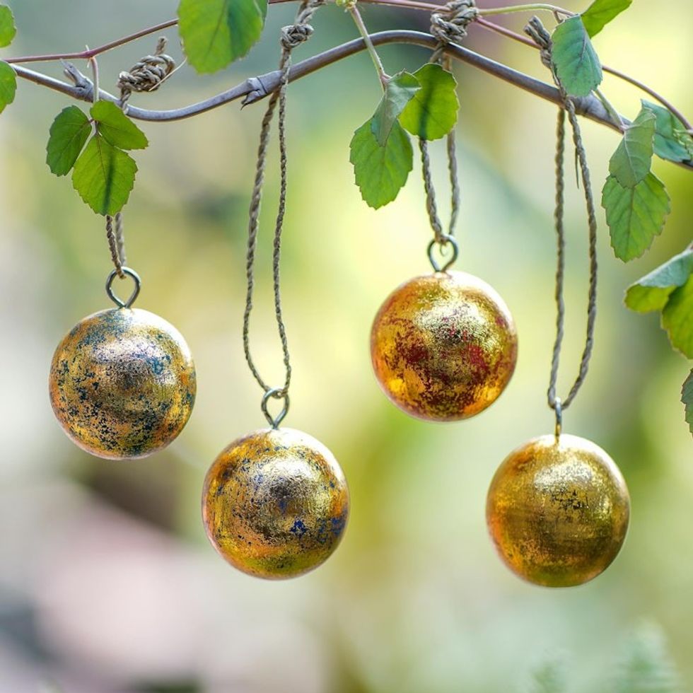 Four Round Gold Tone Albesia Wood Ornaments from Bali 'Golden Baubles' Item ID: 2669891774