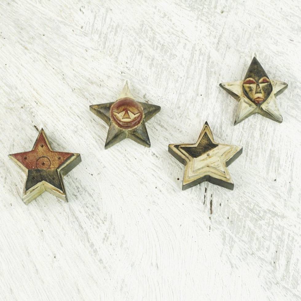 Four Sese Wood Star Ornaments in Black Red and White 'Nsruma Sophistication' Item ID: 2671803503