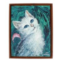 Framed Original Painting of White Cat 'Dreamy Cat I' Item ID: 2669903801