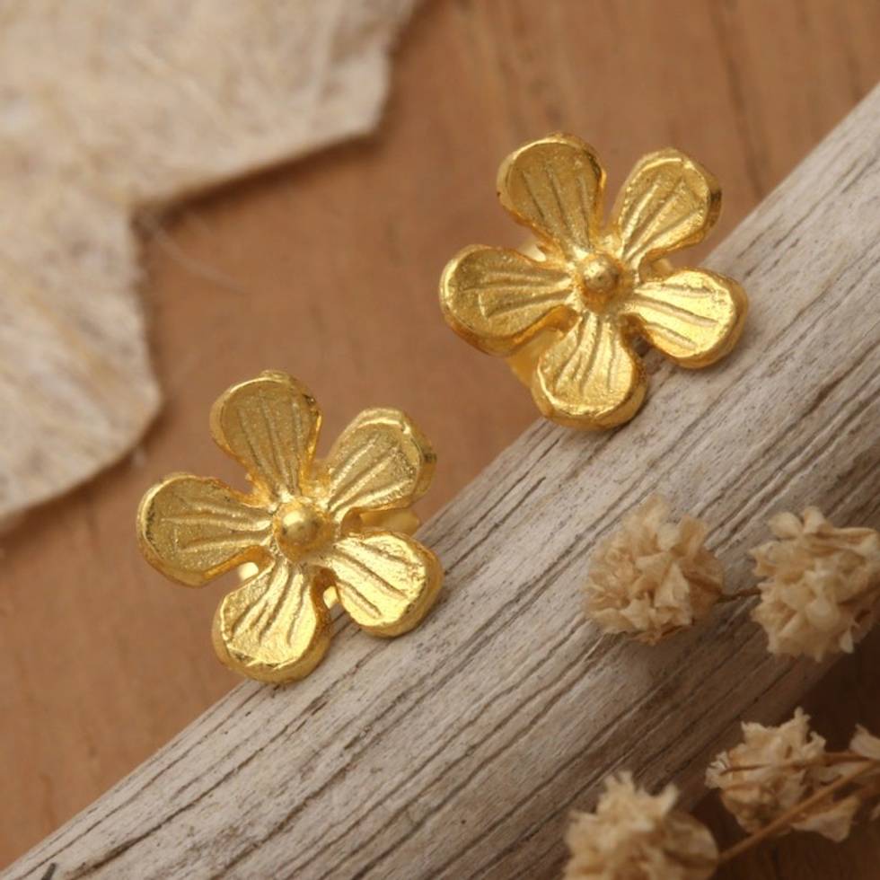 Frangipani-Shaped 22k Gold-Plated Stud Earrings from Bali 'Sunshine Frangipani' Item ID: 2671671188
