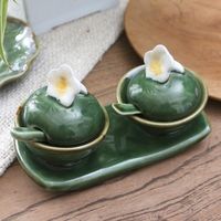 Frangipani-Themed Ceramic Condiment Set from Bali 5 Pcs 'Summer Frangipani' Item ID: 2671747498