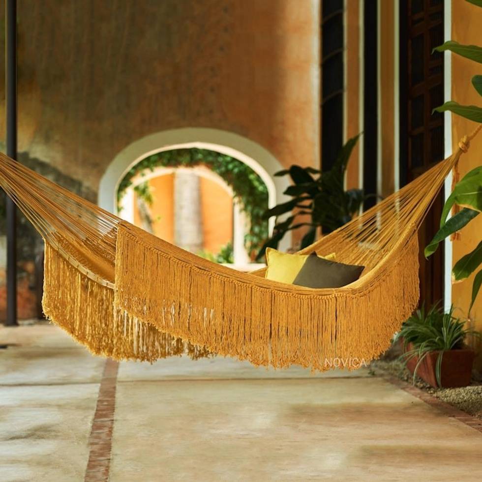Fringed Amber Yellow Cotton Hammock from Mexico Double 'Amber Cascade' Item ID: 2671808481