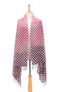 Fringed Batik Cotton and Rayon Blended Shawl 'Dusty Rose Dots' Item ID: 2671800451