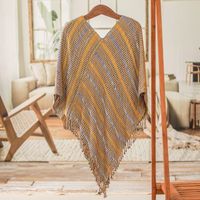 Fringed Cotton Poncho 'San Juan Spring' Item ID: 2671777368