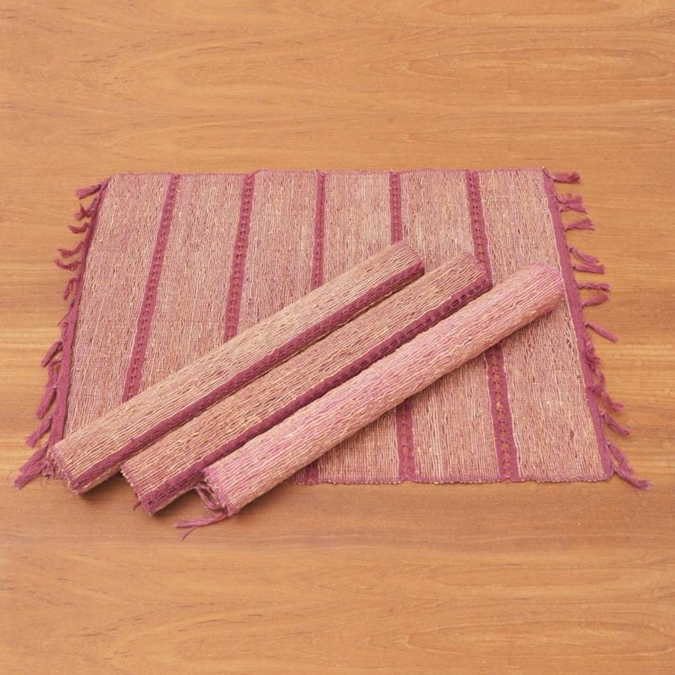 Fringed Natural Fiber and Cotton Placemats Set of 4 'Dusty Rose' Item ID: 2671745133
