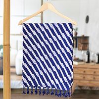 Fringed Patterned Blue White Rayon Batik Scarf from Java 'The Waves' Item ID: 2671764128