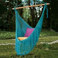 Fringed Teal Cotton Rope Mayan Hammock Swing from Mexico 'Sea Breezes in Teal' Item ID: 2671808233