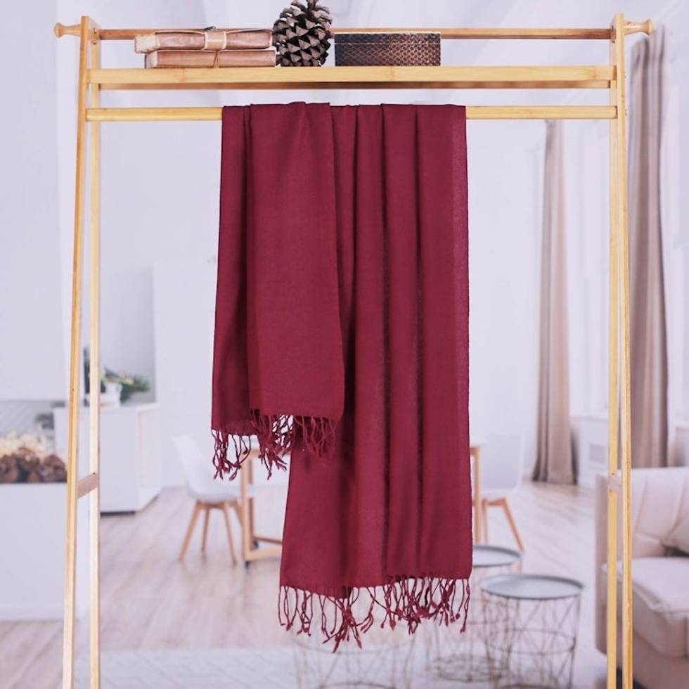 Fringed Wine Wool Shawl with Hand-Woven Geometric Motifs 'Winter Warmth in Wine' Item ID: 2669892323