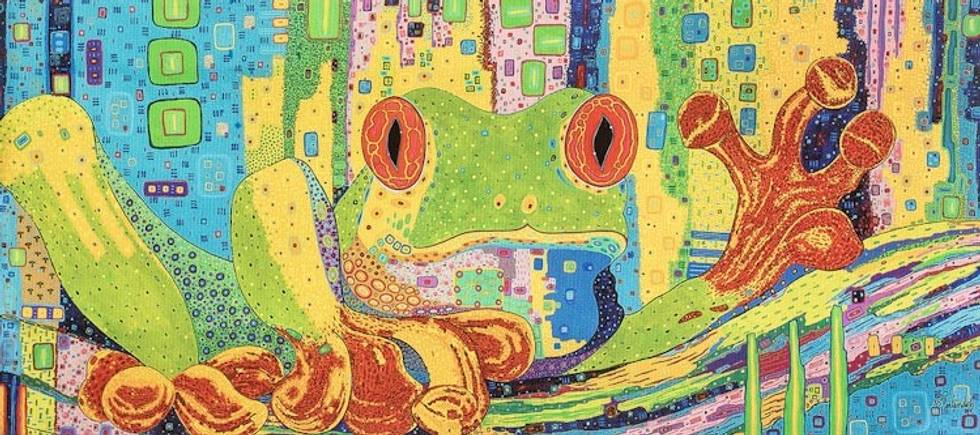 Frog-Themed Modern Multicolored Stretched Sublimation Print 'Petite Red-Eyed Tree Frog' Item ID: 2671769752