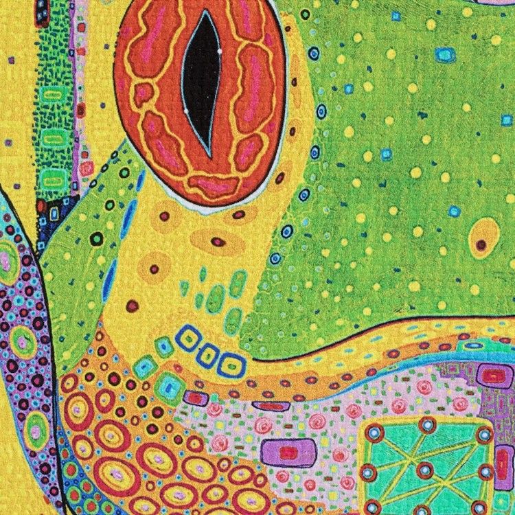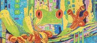 "The adorable creature that graces this bright wall art is the red-eyed tree frog which is found in Costa Rica. Ferlander Arguedas makes it the protagonist of a decorative accent printed with the sublimation technique on a stretched canvas from his original artwork crafted with varied painting techniques and materials."