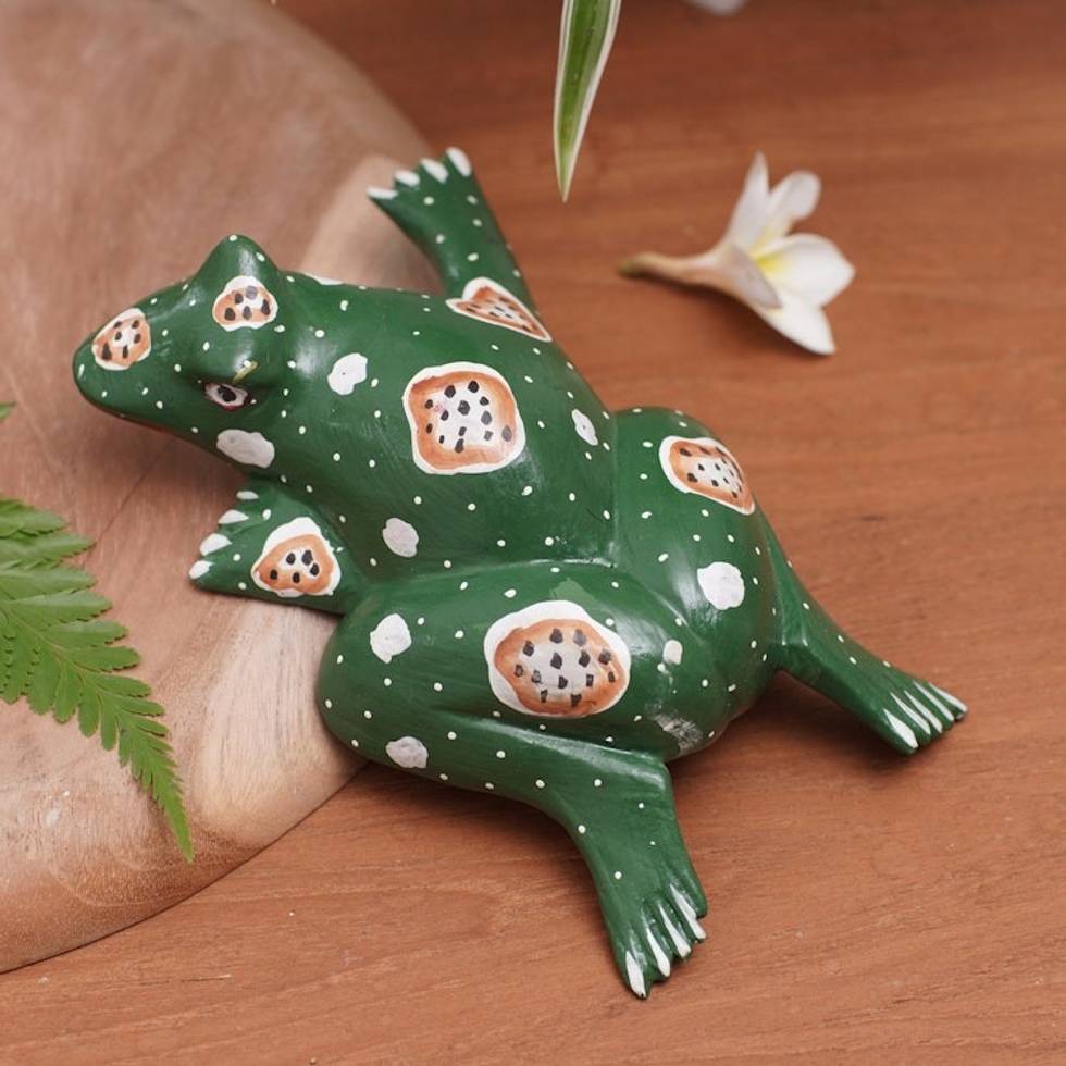Frog Wood Figurine Hand-carved Hand-painted in Indonesia 'Swimming Frog' Item ID: 2671748734