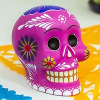 Fuchsia Ceramic Floral Day of the Dead Figurine 'Fuchsia Skull with Flowers' Item ID: 2671808109
