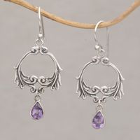 Garland Shaped Sterling Silver Earrings with Amethysts 'Bali Garland' Item ID: 2671734751