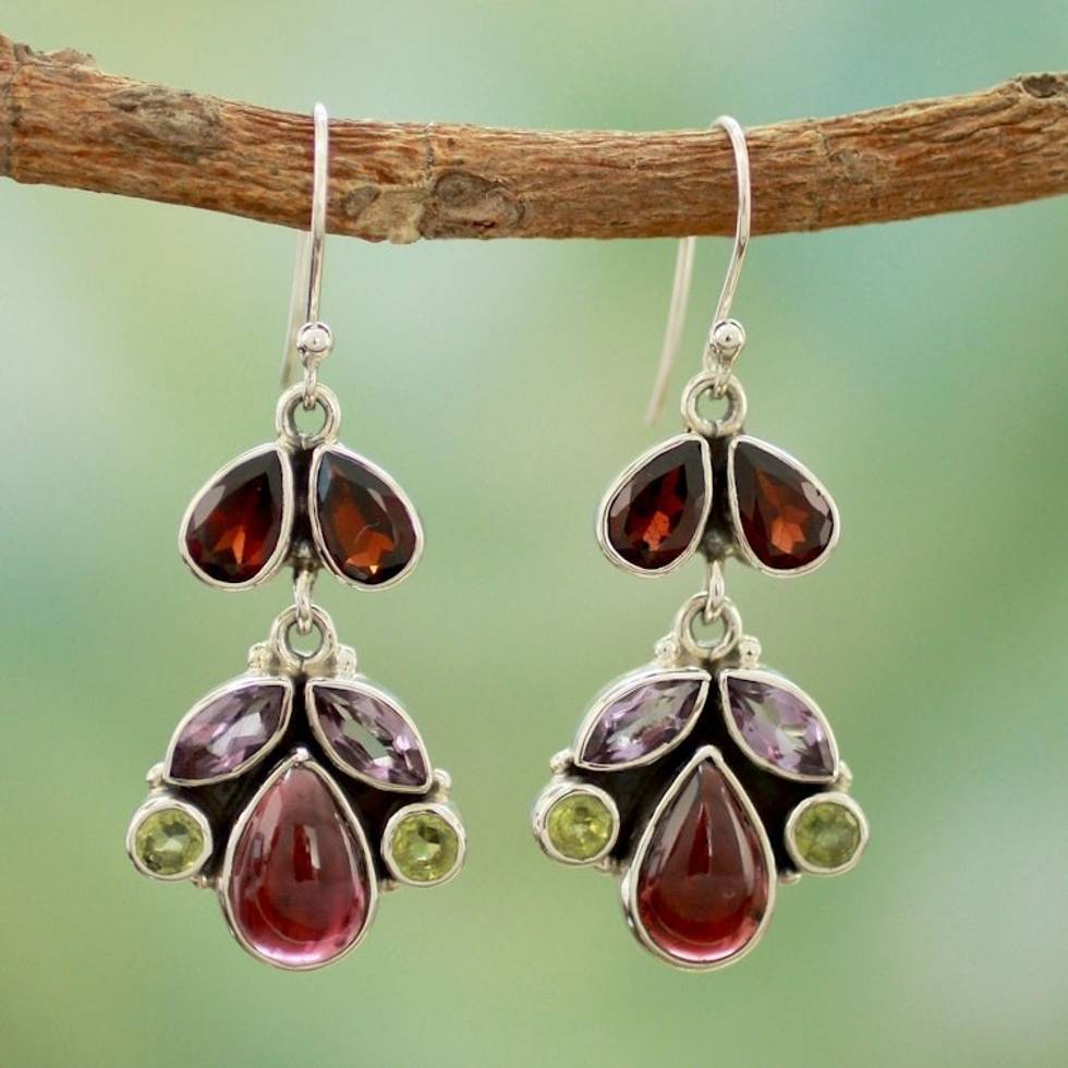 Garnet and amethyst dangle earrings 'Elegance' Item ID: 2671794874