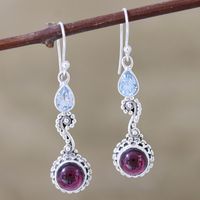 Garnet and Blue Topaz Dangle Earrings 'Right Combination' Item ID: 2671789908
