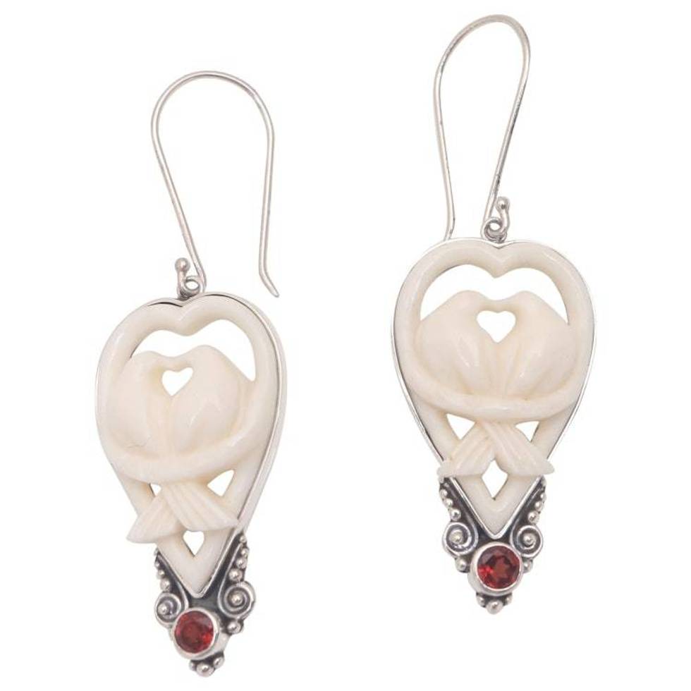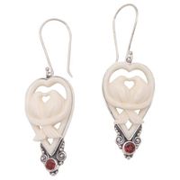 Garnet and Bone Dove Dangle Earrings from Bali 'Dove Couple' Item ID: 2676659026