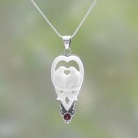 Garnet and Bone Dove Pendant Necklace from Bali 'Dove Couple' Item ID: 2671473945