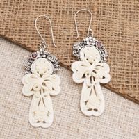 Garnet and Bone Floral Dangle Earrings 'Frangipani Summer' Item ID: 2671745147