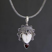 Garnet and Bone Silver Pendant Necklace 'Princess Aura' Item ID: 2671471792