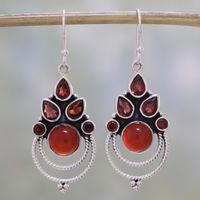 Garnet and Carnelian Dangle Earrings by Indian Artisans 'Radiant Harmony' Item ID: 2669925472
