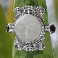 Garnet and Carved Bone Silver Ring 'Moon Dream' Item ID: 2669922119