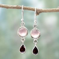 Garnet and Chalcedony Dangle Earrings from India 'Crimson Droplets' Item ID: 2669923850