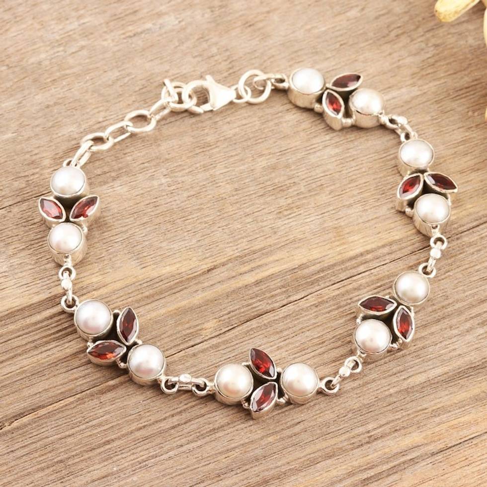 Garnet and Cultured Pearl Link Bracelet 'Radiant in Red' Item ID: 2669925153