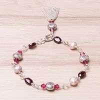 Garnet and Cultured Pearl Sterling Silver Charm Bracelet 'Tangy Sweet' Item ID: 2671798790