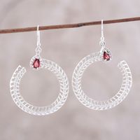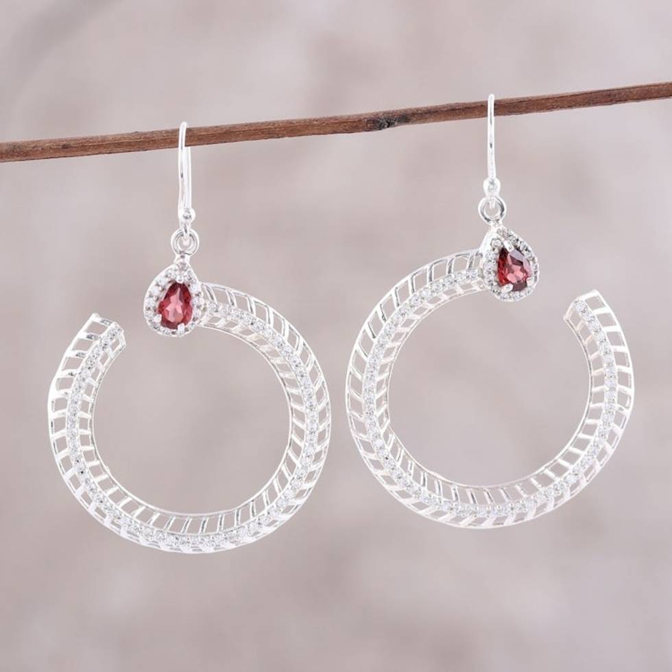 Garnet and CZ Dangle Earrings from India 'Radiant Crescent' Item ID: 2671792428