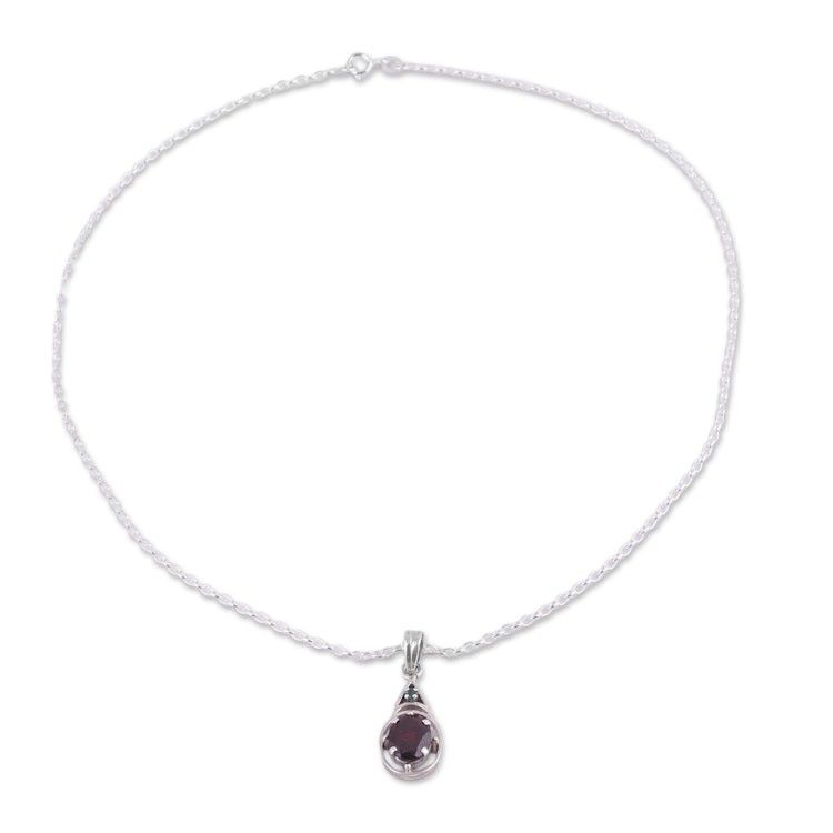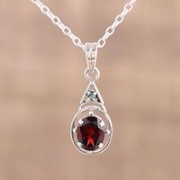 Garnet and Emerald Pendant Necklace from India 'Scarlet Joy' Item ID: 2671790615