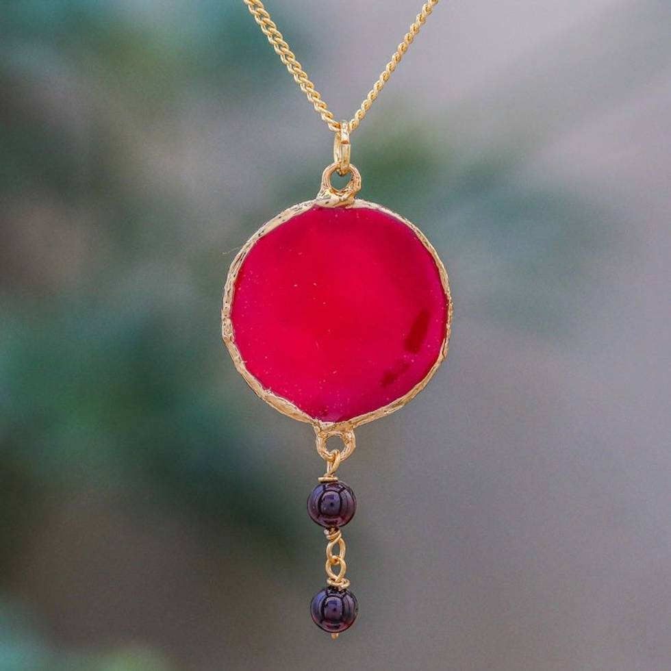 Garnet and Gold Plated Natural Rose Petal Pendant Necklace 'Autumn Red Rose' Item ID: 2669927665