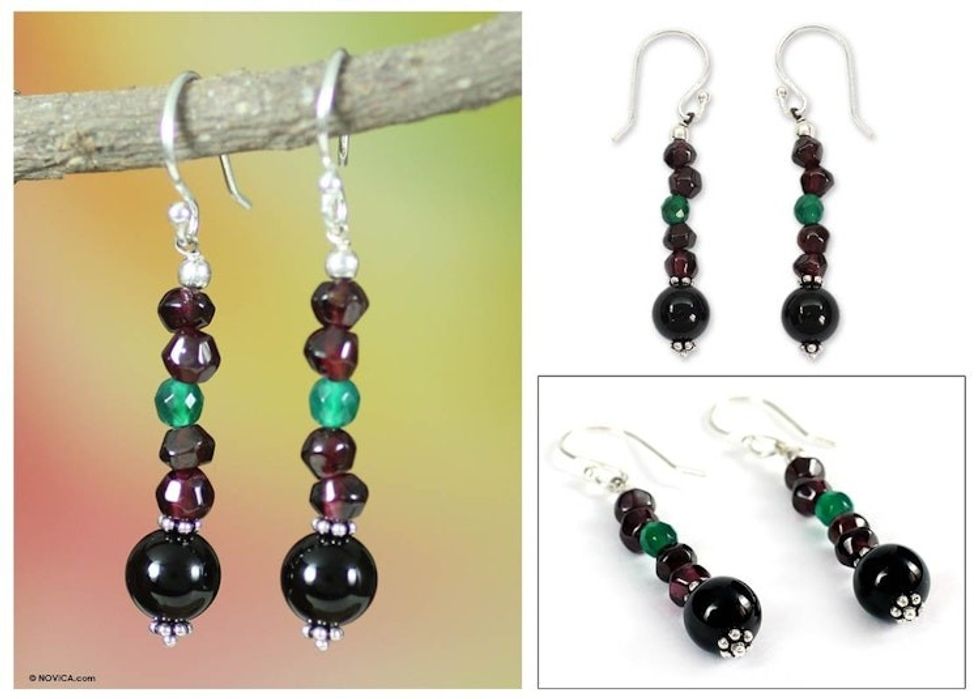 Garnet and onyx dangle earrings 'Colors of India' Item ID: 2671618736