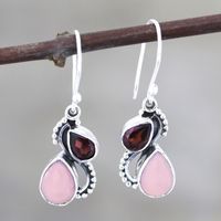 Garnet and Opal Teardrop Dangle Earrings from India 'Two Teardrops' Item ID: 2669943742