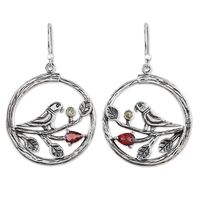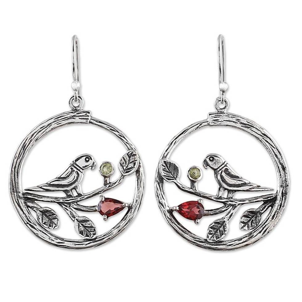 Garnet and Peridot Parrot Dangle Earrings from India 'Parrot Song' Item ID: 2671620717