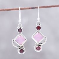 Garnet and Pink Chalcedony Dangle Earrings Handmade in India 'Beauty of the Horizon' Item ID: 2671792459