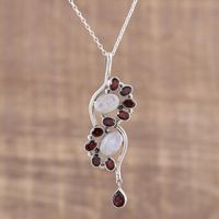 Garnet and Rainbow Moonstone Pendant Necklace from India 'Sparkling Spiral' Item ID: 2671790672
