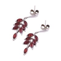Garnet and Rhodium Plated Silver Dangle Earrings 'On the Vine' Item ID: 2671791122