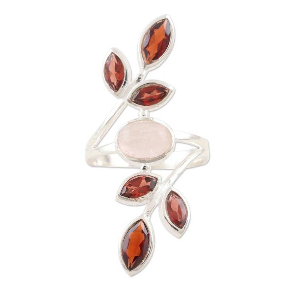 Garnet and Rose Quartz Cocktail Ring 'Passion Tree' Item ID: 2676665962