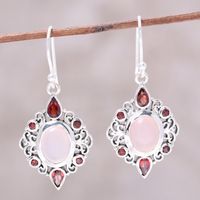 Garnet and Rose Quartz Dangle Earrings from India 'Glory of Red' Item ID: 2669924152