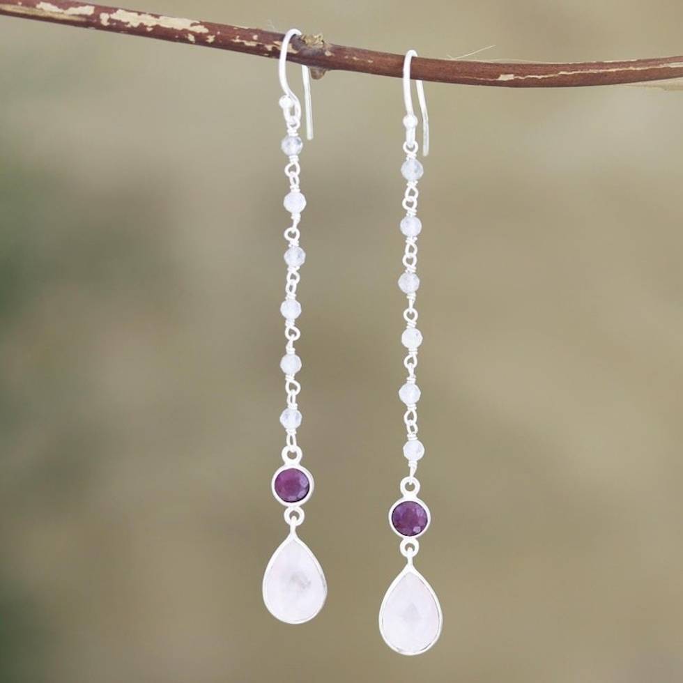 Garnet and Rose Quartz Dangle Earrings 'Tow the Line' Item ID: 2671787986