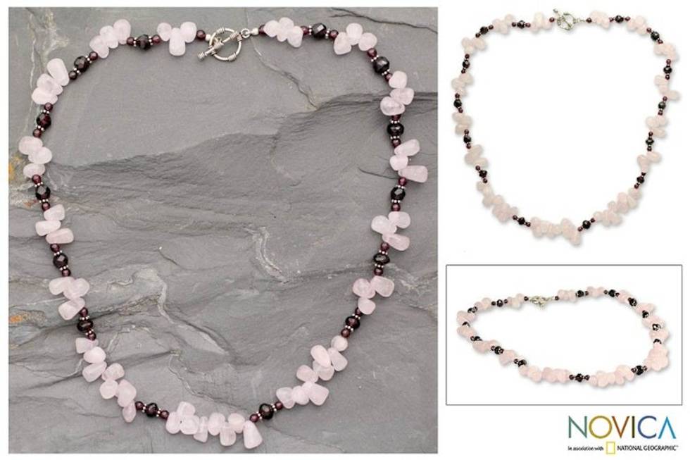 Garnet and rose quartz strand necklace 'Love's Serenade' Item ID: 2671794247