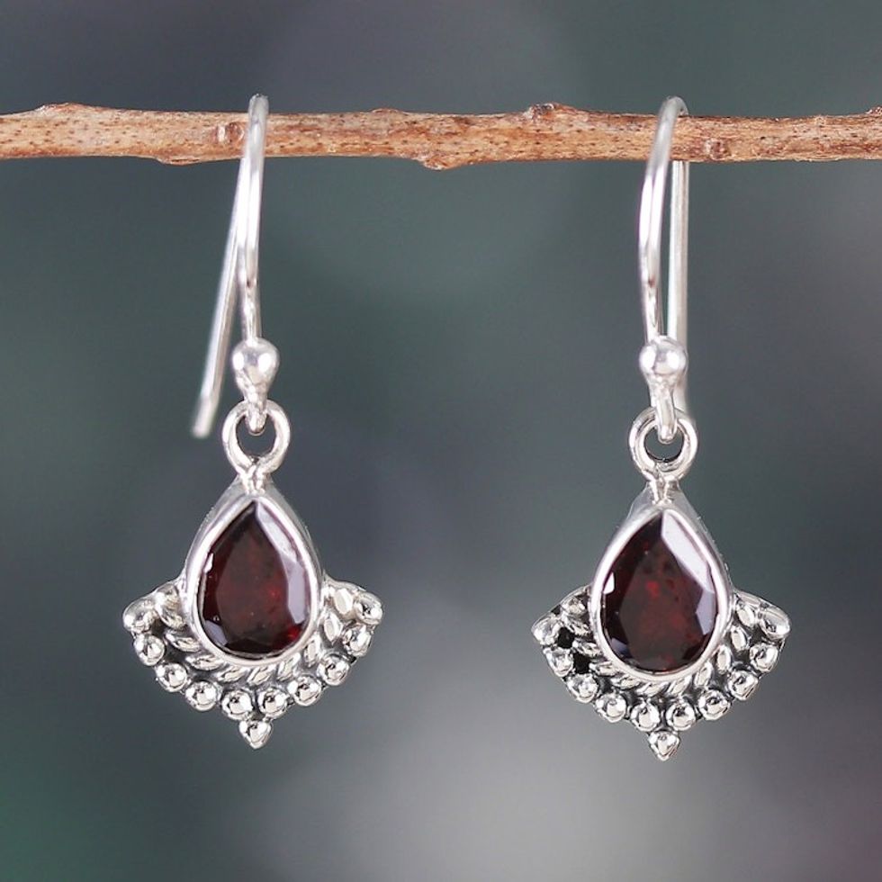 Garnet and Silver Dangle Earrings with Rope and Dot Accents 'Red Artistry' Item ID: 2671625291